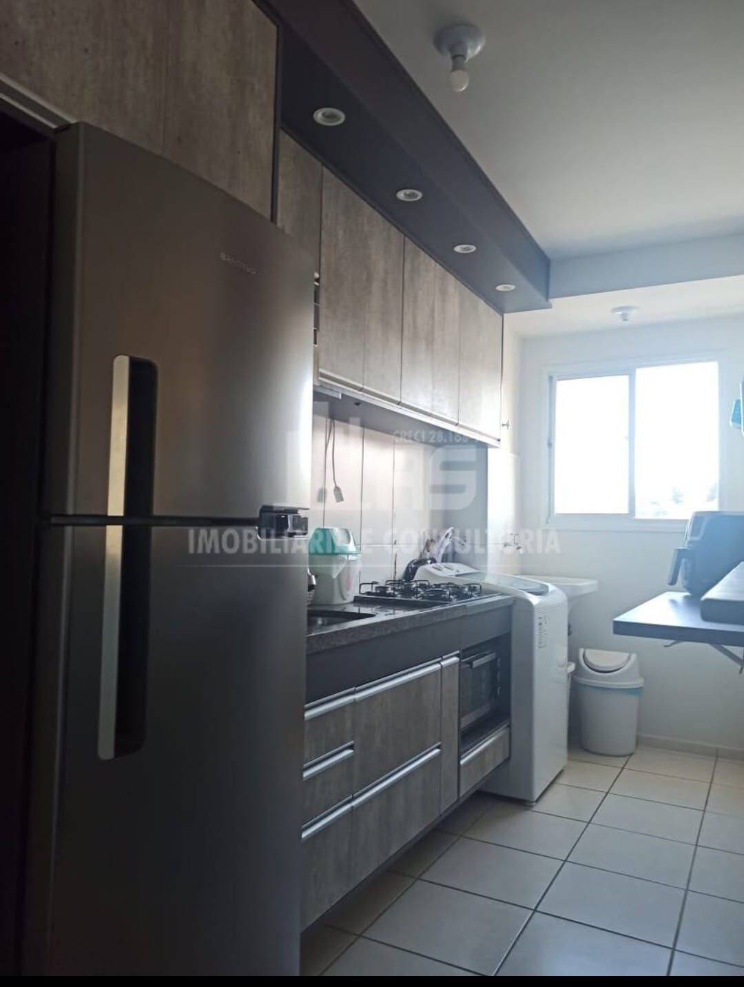 São dois quartos, sendo um como armário planejado, Cozinha planejada, Sala com dois ambientes, Banheiro social, Garagem coberta.