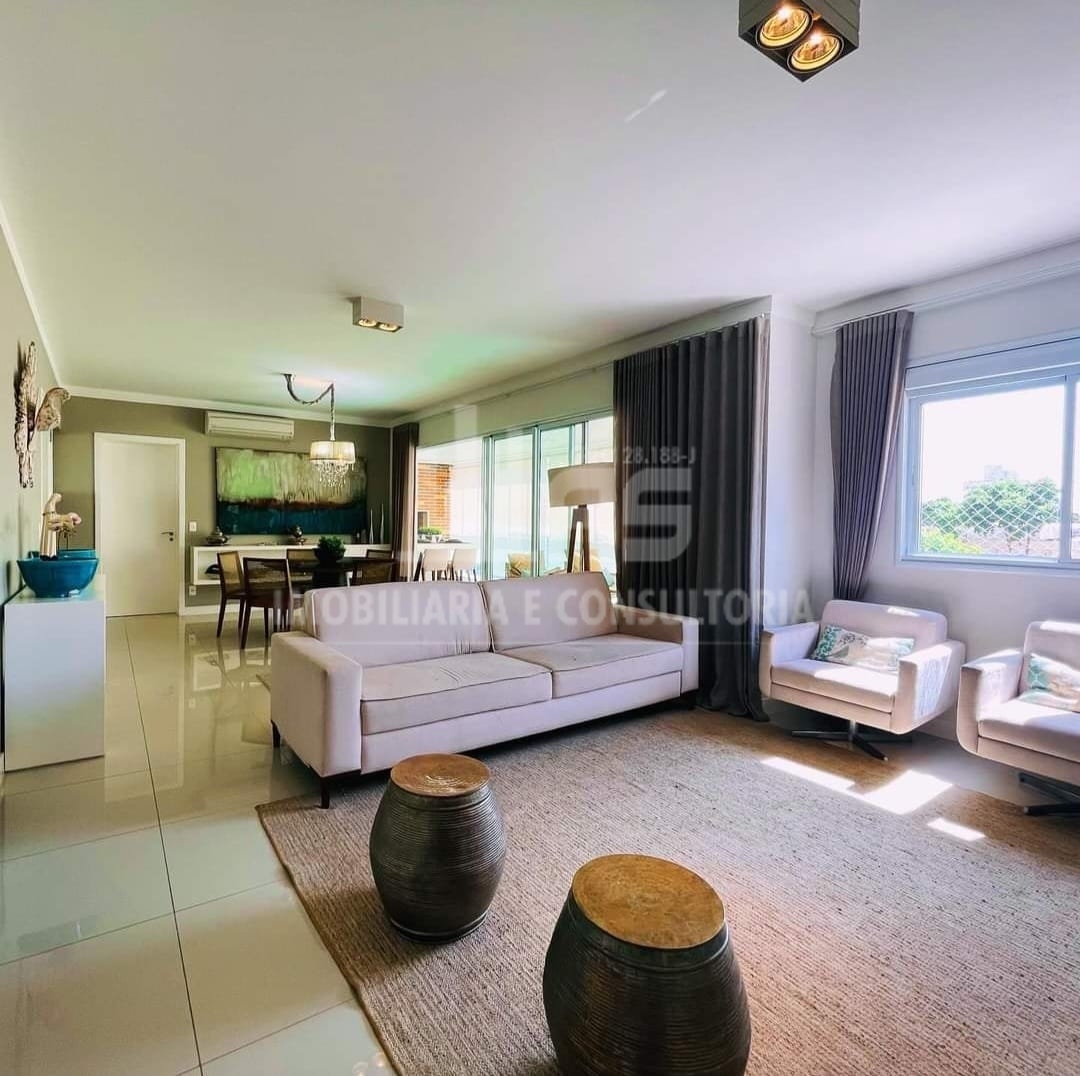 Lindo apartamento de alto padrão localizado na área central da cidade, fino acabamento e rico em armários planejados, dispõe de 3 suítes, todas com ar condicionado, sala para 2 ambientes, lavabo, cozinha toda planejada, área de serviço, varanda gourmet com churrasqueira, sacada com portas em blindex e 2 vagas de garagem cobertas.