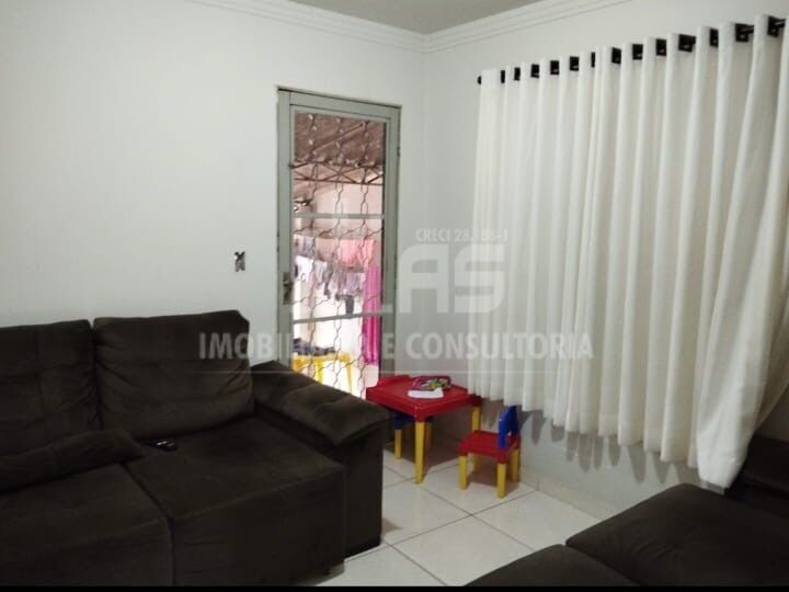 Sala ampla para dois ambientes , Cozinha , Área de serviço coberta e Garagem para um carro.
