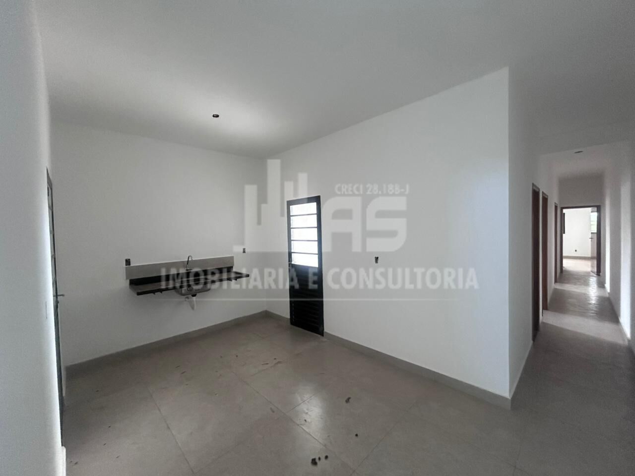 Casa com três Dormitórios, sendo uma suíte, banheiro social, Sala com pe direito alto, Cozinha.