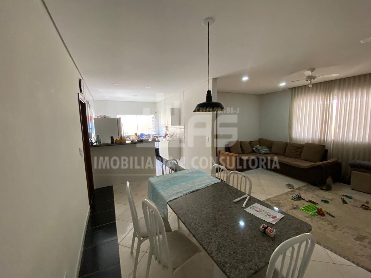 Imóvel com 3 quartos, sendo 1 suíte, escritório, sala ampla, cozinha planejada, lavanderia, quintal, churrasqueira e garagem coberta.