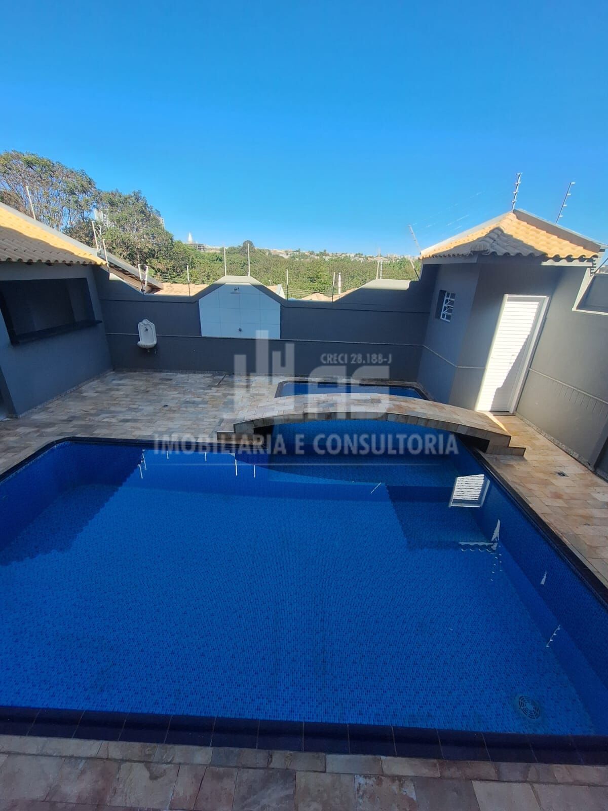 São três Dormitórios, sendo os três suítes com box em blindex , Uma das suítes possui banheira e closet , lavabo , banheiro social , Sala para Dois ambientes , Cozinha equipada com armários , Dispensa ,Lavanderia coberta , Área de lazer com churrasqueira e piscina , Garagem para quatro carros, com portão eletrônico .Terreno :330m