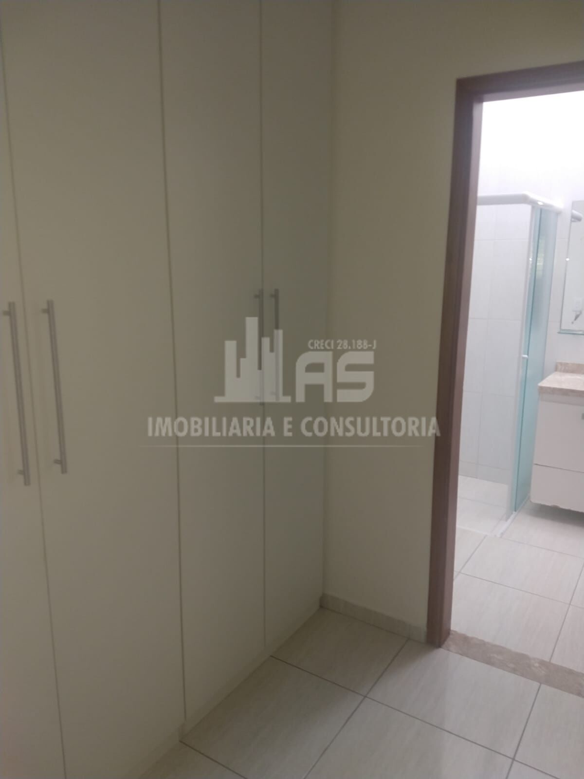 São três quartos, sendo uma suíte, sala com pé direito alto, porta pivotante, blindex.