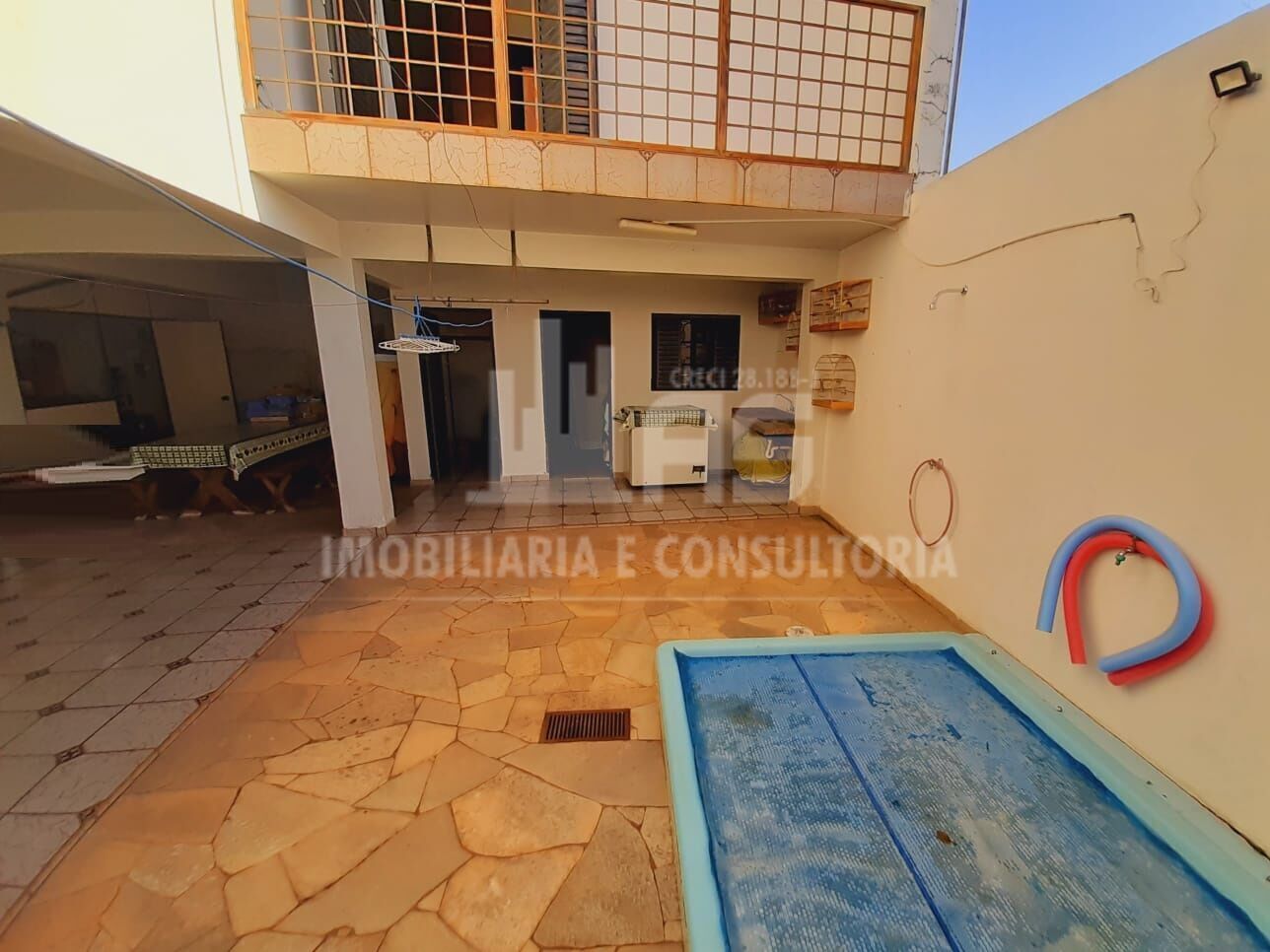 Excelente sobrado com ótima localização, parte inferior do imóvel contém sala de TV integrada a sala de jantar, lavabo, escritório, cozinha, despensa, lavanderia coberta, banheiro social, quintal amplo, piscina, quarto de despejo e garagem para 3 carros sendo 2 vagas cobertas, parte superior com sala de TV, 3 quartos sendo 1 suíte e banheiro social.