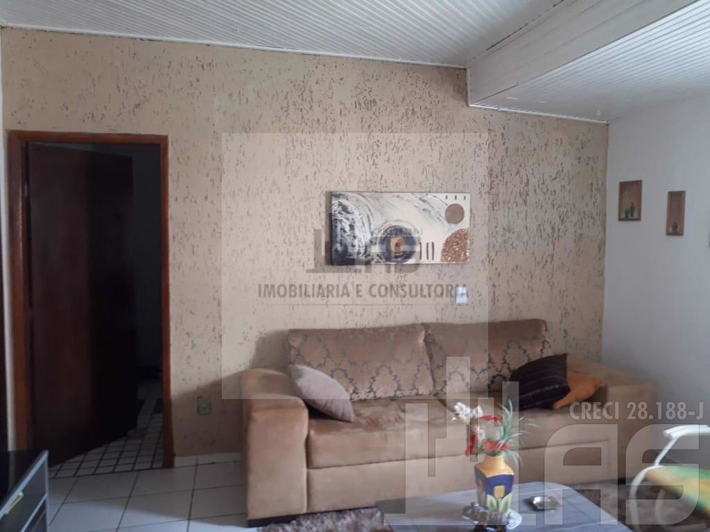 Casa construída no fundo do terreno, com 2 quartos, sala de tv, copa, cozinha, banheiro social, área de serviço, e amplo quintal