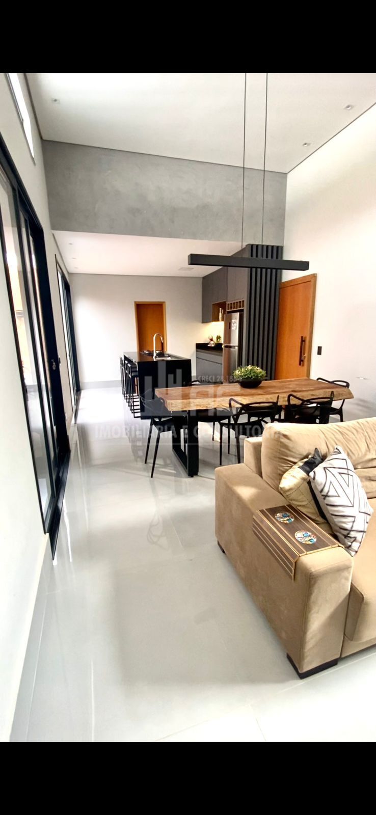 Ótimo imóvel a venda com fino acabamento em porcelanato, gesso, iluminação toda em LED, localizado no bairro Jardim Bandeirantes, possui 02 dormitórios, sala de TV e jantar integrados, com pé direito alto, banheiro social com box em blindex, cozinha com ilha cooktop, armários planejados, lavanderia e garagem coberta para 02 veículos, com portão eletrônico.