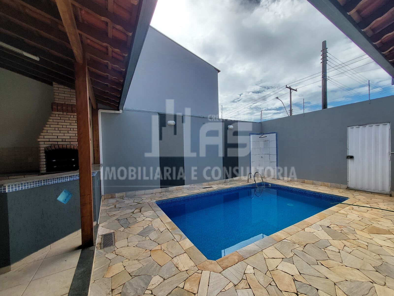 São três dormitórios , sendo uma suíte , um banheiro , uma sala , cozinha , Área de serviço , Área de lazer com churrasqueira , Piscina ,