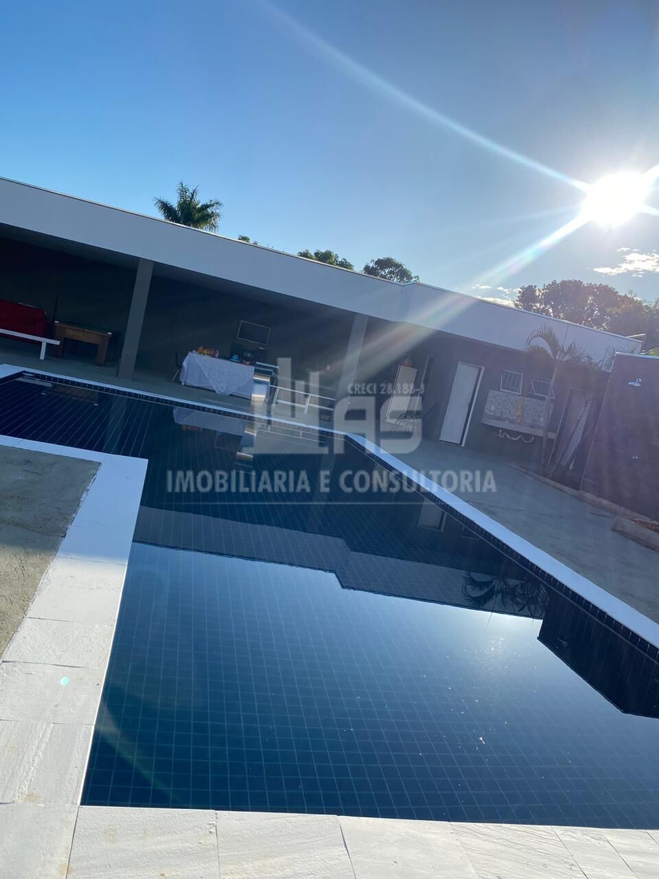 Chácara de alto padrão, possui 2 suítes, 4 banheiros, churrasqueira, quintal, piscina e sacada.