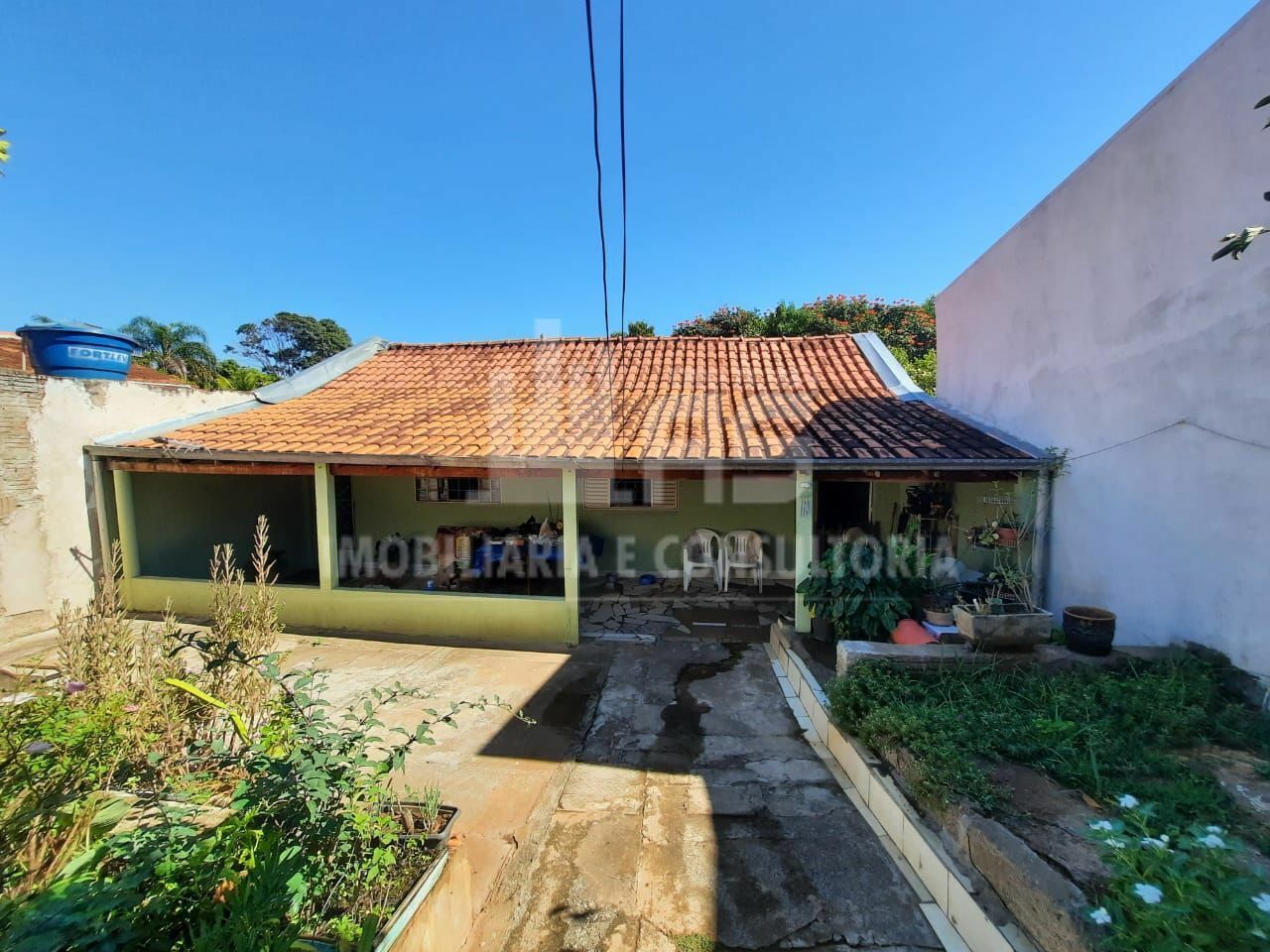 Imóvel residencial com área total de terreno de 500 m2, divide-se em sala, cozinha, 2 banheiros sociais, 3 dormitórios, área de serviço, quintal amplo e garagem.